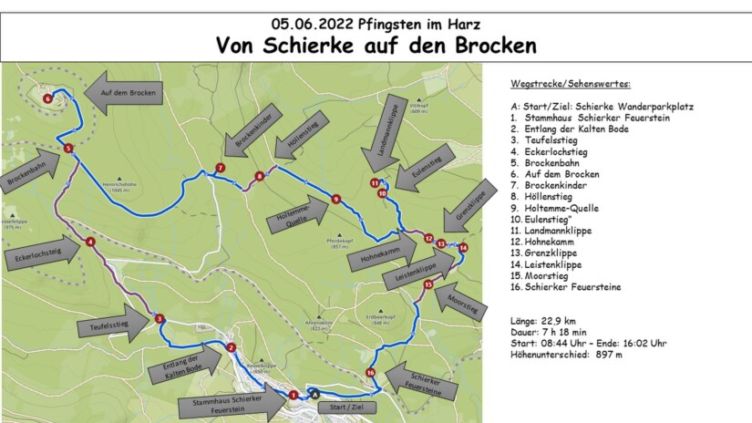 Auf halben Weg zur Brockenstraße quert man die Schluftwasser-Brücke und wandert dann weiter den Eckerlochstieg/Teufelsstieg" bis zum Ende.