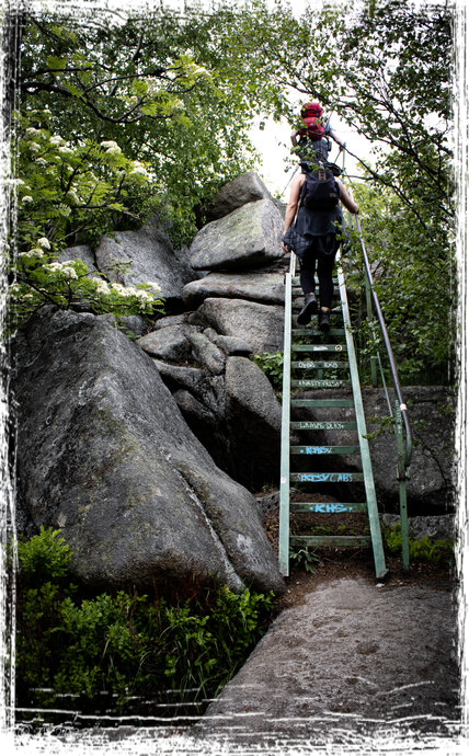 Diese bestiegen wir natürlich und genossen den Rundumblick in den Harz, zum Brocken, Wachberg und zur "Grenzklippe".