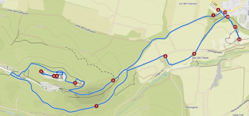 Im Anschluss stiegen wir über den Nordrandweg ins Tal ab und wanderten über den Steinthaleben-Kyffhäuser-Tilleda-Weg zurück nach Tilleda zurück.