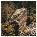 Wie der Name schon verrät, steht der der "Grenzwächter" nahe der deutsch-tschechischen Grenze. An seiner Unterseite ist etwas versteckt gelegen, eine Boofe. Der Weg geht hier nun steil bergauf, vorbei am Grenzwächter und man erklimmt ein Felsenmeer, auf dessen Felskante es dann entlang geht - dies ist der Grenzweg, welcher natürlich zum Forststeig