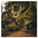 bleiben und neue Sachen entdecken. Los ging es mit dem Eichgarten. Zum Eichgarten gibt es leider nicht viele Infos, weder Zweck noch wer ihn erstellt hat. Auch der Fels mit der Treppe ins nirgendwo gibt Rätsel auf. Er hat keine Aussicht, keine Höhle, nur ein sogenanntes Rabenbad ist auf seinem Gipfel erkennbar – vielleicht hat auch nur jemand geübt, wie man Treppen in den Sandstein hat. Den Weg durch den Wald weiter gelangt man vor bei an Mauern zu Einsiedler´s Eiskeller, einer Höhle. Wenn den Wald wieder verlässt und auf den Hauptwanderweg kommt, stößt man unweigerlich auf die „Steinerne Scheune“ einem Kletterfelsen und eine Höhle. Die Öffnung auf der Wegzugewandten Seite ist zugemauert, auf der Rückseite befindet sich die Höhle.