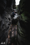 Aller Anfang ist schwer: die ersten Tritte muss man suchen, sich bisschen in die Felsspalte klemmen und dann geht es durch das Loch hinauf - die erste Hürde ist geschafft. Im weiteren Verlauf muss man immer wieder bisschen Klettern, sich mit den Füßen einen sichern Tritt verschaffen und mit den Händen eine Sandsteingriff suchen, um sich hochzuziehen bzw. einer der den Absatz bereits geschafft hat, reicht einem die Hand. Die Mühe, der Blick in die Felsenwelt und der Adrenalinkick lohnt sich.