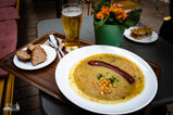 ) bis dieser grundsätzlich nach rechts abbiegt, zogen es jedoch vor, weiter gerade aus, einen etwas unbekannteren Aufstieg zunehmen, der genau an der Lehmannschlucht bzw. Lehmannschluchthöhle raus kommt. An einem Aussichtspunkt im Aufstieg hat meinen einen herrlichen Blick zur Festung Königstein und zu den beiden Bärensteinen. Oben angekommen bogen wir erst einmal nach rechts zur Berg Gaststätte ab und gönnten uns einen sächsischen Kartoffeltopf mit Rauchwurst, ein Radler und ein Stück Kuchen - mmh einfach lecker.