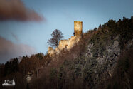 ) wieder zurück zukehren. Nun war es nicht mehr weit bis nach Mala skala (deutsch: Kleinskal). Im Ort blickten wir noch einmal auf Suche skaly, Burg Frydstejn, Burg Vranov und auf den Sokol zurück.