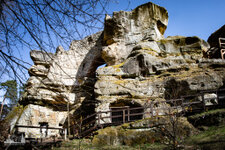 Über ein kleiner Brücke gelangt man zum Abstieg zur Felsenburg Rotstejn. Diese Felsenburg wurde erstmals 1318 erwähnt, erhalten sind viele in Stein gehauene Räume, Mauern, Durchgänge und ein Brunnen. Leider war die Burg auch heute geschlossen, so das wir sie nicht näher besichtigen konnten - also mussten wir wir weiterziehen.