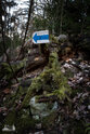 Vom Einkaufsmarkt geht es ein Stück die Straße runter und dann links rein und den Weg ein paar hundert Meter hoch bevor es links in den Wald wieder auf den Wanderweg (