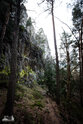 Atemberaubend ragen die Felswände nach oben. Wir haben den Wanderweg verlassen um noch näher an die Felsen zu kommen und wanderten nun auf so einer Art Bergpfad. Es war atemberaubend schön doch nach einiger Zeit wurde der Weg immer weniger erkennbar. Wir schlängelnden uns so durch und mussten zum Schluss noch durch ein Rodungsgebiet um auf den Wanderweg (