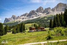 An den Denkmal verließen wir den Hirzelsteig und stiegen zur Paolina Hütte (Refugio Paolina) ab. Hier stärkten wir uns nochmal kurz und setzten den Abstieg zur Talstation. Der Weg führt eine ganze Weil unterhalb der Seilbahn entlang, bis zur Straße, der wir dann bis zum Parkplatz folgten. Hier hatten wir nochmal einen herrlichen Blick zu Rosengarten und Latemar.