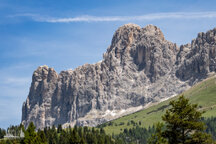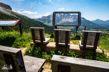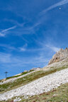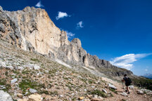 Wir gingen heute bis zum Adler, dem Christomannos-Denkmal. Der Weg ist echt interessant, verläuft er doch direkt unterhalb der mächtigen Rotwand, vorbei an kleinen Wasserfällen, mächtigen Felsen, über Geröll und auf schmalen Pfaden, teilweise mit kleinen Hindernissen, wie einer einfachen Seilpassage. Dennoch ist Trittsicherheit unabdingbar.