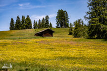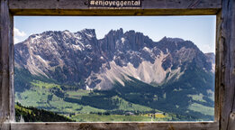 Unser erstes Ziel war der Karer See (Lago di Carezza), zu dem wir erst eine Hängebrücke über- und dann einen Fußgängertunnel durchqueren mussten - hat bloß noch eine Rolltreppe gefehlt, damit die ganzen Turnschuh- und Selfietouristen ja nicht so viel laufen müssen. Hier am See war echt viel los und warum - weil sie im glasklaren blauen Wasser des Sees sich die Latemargruppe so schön spiegelt. Also drehten wir fix eine Runde um den See und verschwanden wieder über die Hängebrücke und wanderten Richtung Kölner Hütte (Refugio Fronza alle Coronelle). Dabei führte uns der Weg vorbei an der Waidmannalm und der Moseralm, immer im Blick auf der einen Seite der Rosengarten, auf der anderen Latemar. Ab der Jolanda Alm ging es dann bis zur Kölner Hütte richtig steil bergauf, insgesamt überwanden wir 500 Höhenmeter (von 1830m auf 2337m).