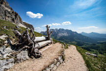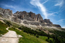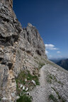Der Hirzelsteig führt ziemlich eben von unterhalb der Kölner Hütte bis zum Denkmal Christomannos und weiter bis zur Rotwandhütte (Rifugio Roda di Vaèl).