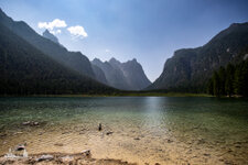 Frustriert heute die Drei Zinnen, trotz weiter Anreise nicht sehen zu können, suchten wir erstmal ein Café, um einen Alternativ-Schlachtplan für heute zu ,achen. Der Frust wurde nicht geringer und so machten wir uns gezwungener Maßen auf den Weg um den Toblacher See, da mit die Fahrt nicht ganz umsonst war.