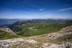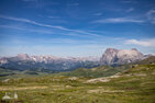 Nach der Stärkung ging es nun noch auf den Monte Petz (Pez), der mit 2536m der höchste Punkt des Schlerns ist. Vom Schlernhaus sind es rund 20 Gehminuten bis zum Gipfelkreuz. Von diesem hat man eine wunderschöne 360 Grad Sicht auf die Dolomiten. Vom Pez ging es wieder vorbei am Schlernhaus und nun über den Touristensteig wieder hinunter zur Seiser Alm.