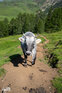Anfangs ist der Steig recht steil und teilweise auch sehr unwegsam, später aber führt er über wunderschöne Almen hinweg, wo auch Kühe unseren Weg kreuzten oder Pferde am Wegesrand zusehen waren. Es ging vorbei an der Saltner Hütte und wieder bergauf über die Seiser Alm. Die Fahrt mi dem Panorama-Sessellift hinunter nach Compatsch konnten wir vergessen, dafür waren wir zu spät und selbst für die Seilbahn hinunter nach Seis wurde die Zeit knapp, denn die letzte Fahrt ist 18:30 Uhr. Oben am Panorama Hotel trafen wir noch kurz Fabian Dalpiaz, mit dem ich ja Anfang des Urlaubs auf Tour war und er ermutigte uns, dass wir die Bahn noch schaffen würden. Also nahmen wir die Beine in die Hand, machten Meter und schafften es auch rechtzeitig.