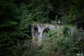 Nach ein ganz kurzen Paus ging es für uns weiter. Nach kurzer Zeit erreichten wir die Meixmühle, die noch im Dornröschenschlaf war. Von hier aus ging es hinauf auf den Borsberg (362m) mit seiner Triangulationssäule. Durch den Wald wanderten wir nun auf dem Jagdweg mit seinen unzähligen Steinbrücken, ich glaube es sind insgesamt 8. Besonders erwähnenswert die Doppelbogenbrücke und die Hohe Brücke. Im ständigen bergauf-bergab geht es bis zum Doberberg (295m) und dem Ehrenhain Wünschendorf. Hier hat man das erste Mal einen fantastischen Blick in die Sächsische Schweiz.
