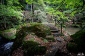 Nach dem man sich mühevoll nach oben gearbeitet hat geht es nun wieder bergab, aber nicht einfach so. Es folgt die längste Stufenanlage der Sächsischen Schweiz. Die Brandstufen zählen rund 800 Stufen und enden am Tiefen Grund, da schlottern einem schon mal die Knie, wenn man unten ankommt. Hier gibt es zwei Möglichkeiten, entweder den Tiefen Grund durch oder die Straße entlang. Der Tiefe Grund ist landschaftlich schönerer Strecke, über Wurzeln und Stufen hinauf, hinunter am Waitzdorfer Bach entlang. Dennoch hatten wir uns für die Straße entschieden, aber nur weil wir den Tiefen Grund schon x-mal gegangen sind, es langsam dunkler wurde und wir uns etwas schonen wollten. Denn das dicke Ende kommt bekanntlich zum Schluss.