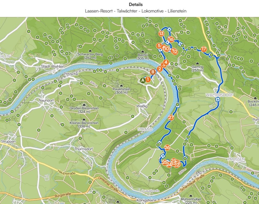Über den Kottesteig ging es zurück nach Rathen und mit der Fähre zurück auf die andere Elbseite. Nun ging die 264 Stufen des Laasensteigs hinauf zur Unterkunft und dann gab es ein leckeres Abendbrot im Hotelrestaurant.