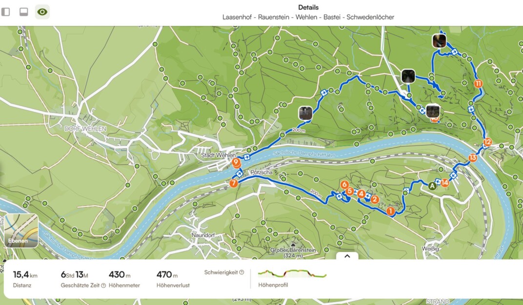 Rauenstein - Wehlen - Bastei - Wehlnadel - Schwedenlöcher
