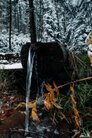 Durch den tiefverschneiten Wald erreichten wir dann den Hauptwanderweg "VPW - Vogtland-Panorama-Weg" und alsbald die Lohbach-Quelle, bei der sich schon das erste Eis über die zarten Pflanzen legte.