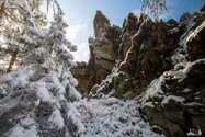 Eigentlich geplant als Herbstwanderung, entpuppte sich diese Wanderung, mit zunehmenden Anfahrtskilometern ins Vogtland als Winterwanderung. 300 Meter Höhenunterschied ließen die Natur unter einer weißen Schneedecke verschwinden. Anfangs noch bedeckt, zog auch nach und nach der Himmel auf und bildete mit dem Azurblau einen herrlichen Kontrast zu schneeweiß.