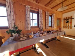 Was gibt es noch auf dem Solerhof? Da dieser einer Biobauernhof ist, gibt es natürlich jeden Tag frische Milch und Jogurt aus eigener Herstellung. Wer mag kann zum Frühstück ein frisches Hühnerei haben. Natürlich kann man auch den Stall mit den Kühen besichtigen und Thomas bei der Arbeit zusehen. Wachhund gibt es keinen, aber dafür Frida, die Wachziege.