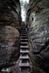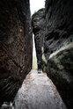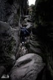 Aller Anfang ist schwer: die ersten Tritte muss man suchen, sich bisschen in die Felsspalte klemmen und dann geht es durch das Loch hinauf - die erste Hürde ist geschafft. Im weiteren Verlauf muss man immer wieder bisschen Klettern, sich mit den Füßen einen sichern Tritt verschaffen und mit den Händen eine Sandsteingriff suchen, um sich hochzuziehen bzw. einer der den Absatz bereits geschafft hat, reicht einem die Hand. Die Mühe, der Blick in die Felsenwelt und der Adrenalinkick lohnt sich.