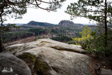 Als erstes gingen wir zur Aussicht beim "Dreizack" mit Blick auf den Rauenstein und Lilienstein. Auf einem Stein ist Heinz eingeritzt, sollte man die Aussicht daher vielleicht "Heinz-Sicht" nennen?