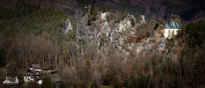 Die Suché skály sind nur rund 600 Meter lang, aber ein beliebtes Klettergebiet mit rund 27 Felstürmen.