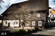 Vom Einkaufsmarkt geht es ein Stück die Straße runter und dann links rein und den Weg ein paar hundert Meter hoch bevor es links in den Wald wieder auf den Wanderweg (