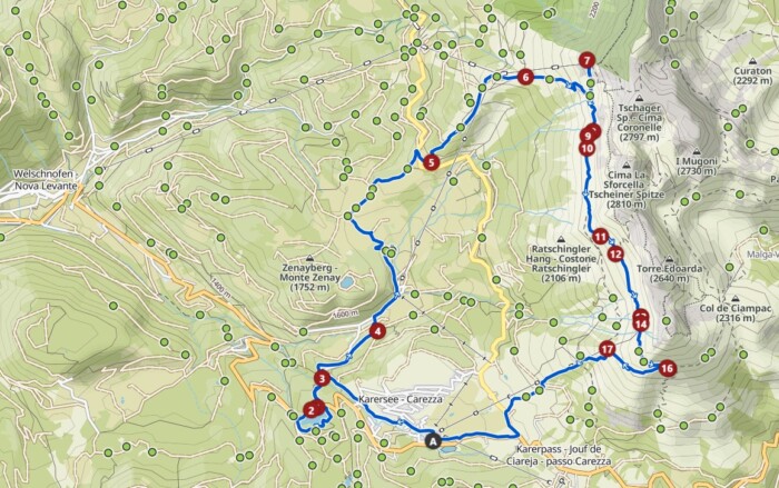 (Rosengarten - Karersee - Kölner Hütte - Hirzelsteig - Paolina Hütte)