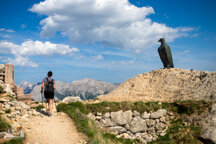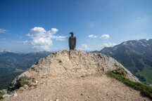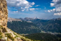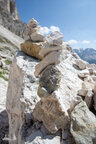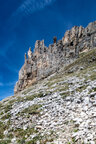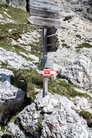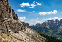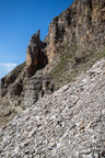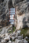 Wir gingen heute bis zum Adler, dem Christomannos-Denkmal. Der Weg ist echt interessant, verläuft er doch direkt unterhalb der mächtigen Rotwand, vorbei an kleinen Wasserfällen, mächtigen Felsen, über Geröll und auf schmalen Pfaden, teilweise mit kleinen Hindernissen, wie einer einfachen Seilpassage. Dennoch ist Trittsicherheit unabdingbar.
