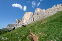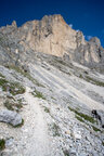 Der Hirzelsteig führt ziemlich eben von unterhalb der Kölner Hütte bis zum Denkmal Christomannos und weiter bis zur Rotwandhütte (Rifugio Roda di Vaèl).
