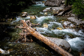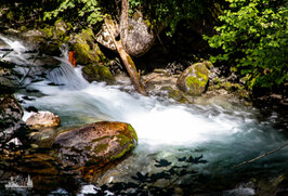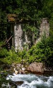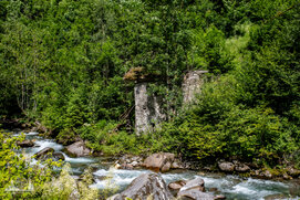 Am Bach entlang auf der gegenüberliegenden Uferseite kann man die Ruinen einer alten Wassermühle erblicken.