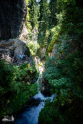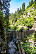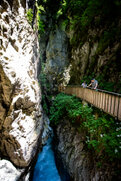 Je höher man kommt, desto spektakulärer werden die Felswände, Schluchten und das tobende Wasser. Es geht direkt durch den Fels und das Wasser rauscht in die Tiefe. Insgesamt überwindet, der 1896 eröffnete Steig durch die Klamm 175 Höhenmeter.