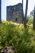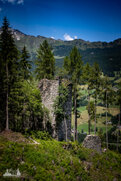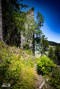 Bei Burghof (Burco) an der Jaufenpassstraße (Via Passo Giovo) ging es dann aber in den Wald hinein, schön schattig und kühl. Nach wenigen hundert Metern erreichten wir auch schon die Burgruine.