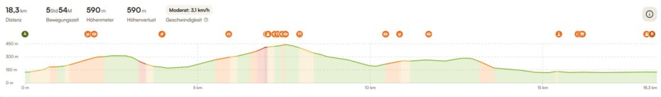 Schwierigkeit: Mittel (lange Strecke, konditionell fordernd, mehrere Anstiege)